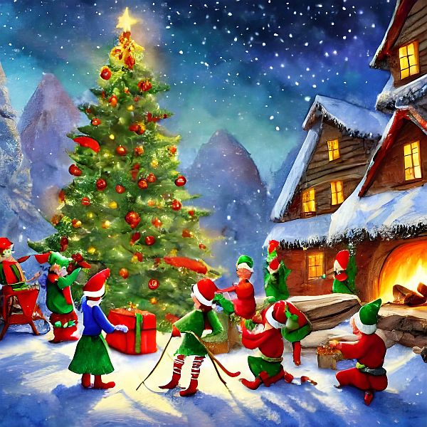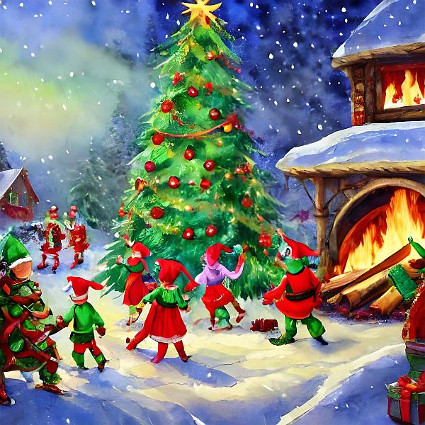 Why would you choose four fun elves at Christmas? Elves are fun and always happy. Christmas is a time for happiness, and as Elves were in a lot of our gingerbread images, Using them around a Christmas tree seemed to be a natural extension to use elves elsewhere.