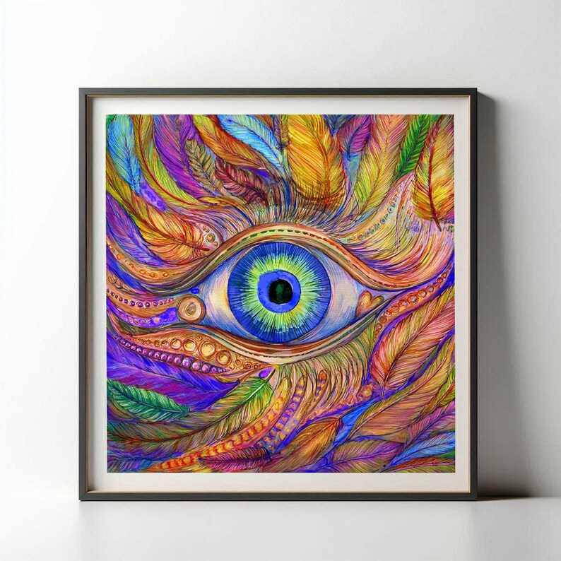 Mystical Feather Eye Art | Printable Abstract Wall Decor for modern homes.